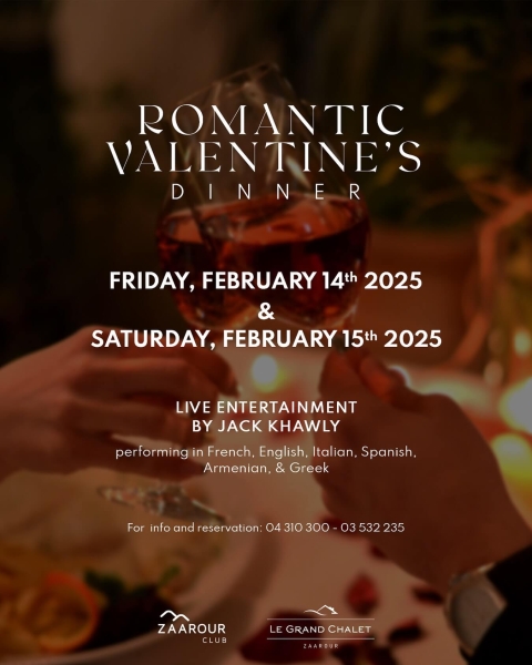 Due to popular demand, we’re extending our Valentine’s Day package at Le Grand Chalet Hotel until February 15. Enjoy a magical evening with a live performance by Jack Khawly. Don’t miss the chance to make unforgettable memories. Reserve your table today!