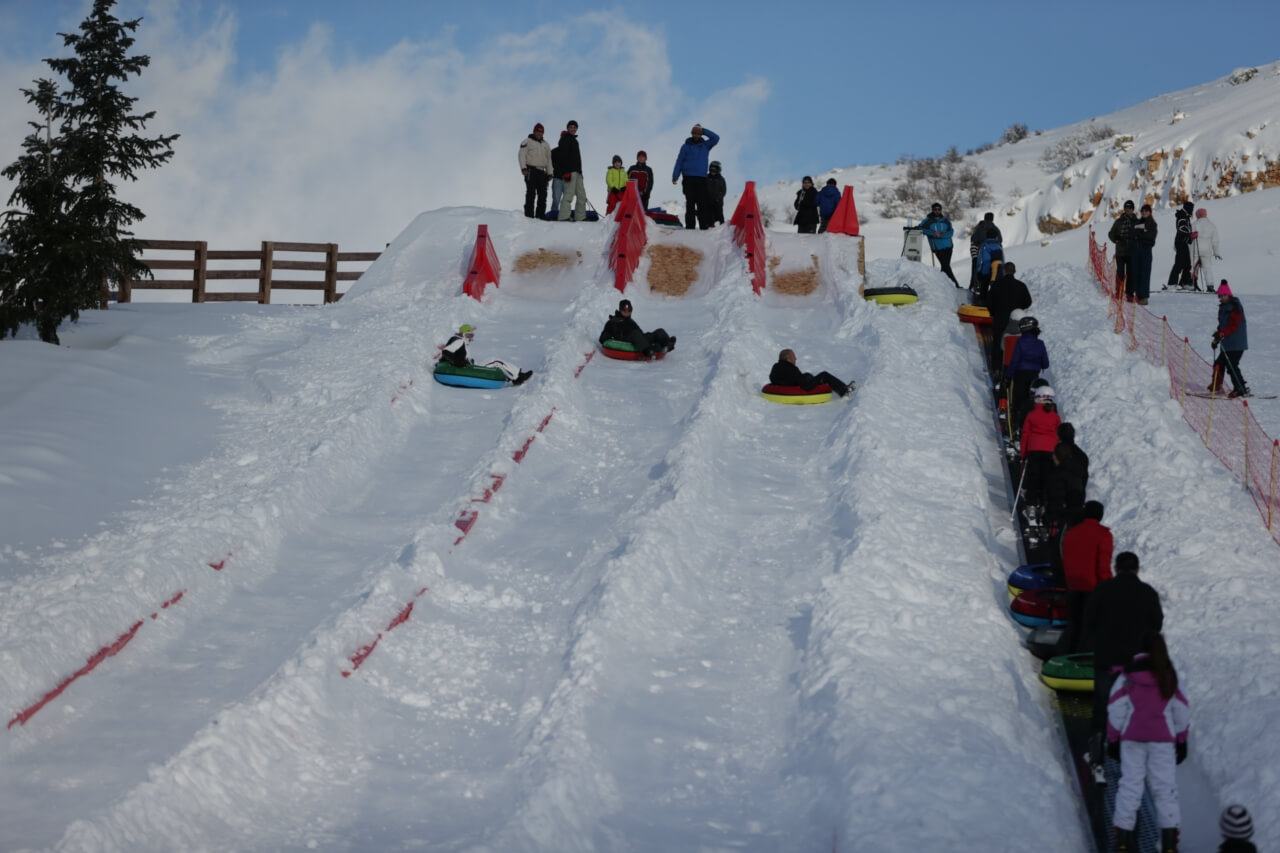 Mountain Express, Blue tiger, Red Rock and La Cabane ski lifts are spread all over Zaarour Mountain to lift you to the top of multilevel slopes (blue and red) to ski & snowboard, along with other unique snow activities Skibike, Fatbike & Extreme sledding). Peak 360 located at the top of the mountain, will astonish you with its breathtaking views of Zaarour Club along with Mount Sannine, Beqaa Valley, Mount Kneisseh, Mount Hermon, all the way to Beirut city and the Mediterranean Sea. On a lower level, 2 magic carpets are available for beginners to learn ski & snowboard assisted by Zaarour Club Ski School for group sessions, in collaboration with ESF, Ecole du Ski Francais and private session in collaboration with Group Z. The magic carpets give you access to a unique and exciting snow activity for all ages, such as the thrilling tubing experience – a new way to slide on snow sitting in an inflated tube (donut shape).